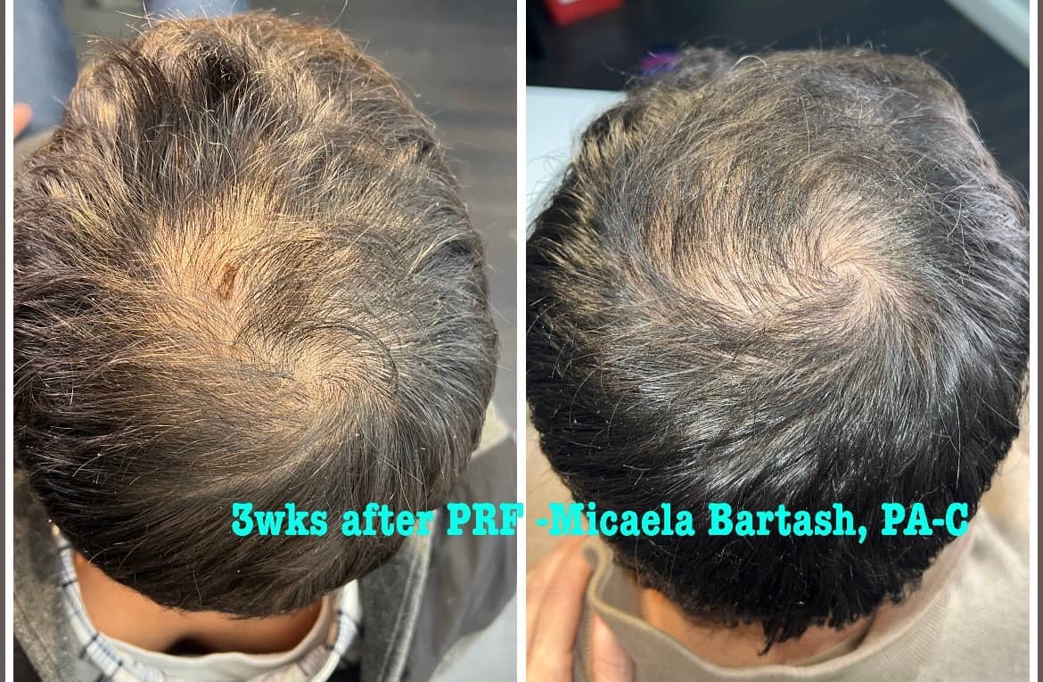 This all-encompassing therapy is ideal for individuals with advanced hair thinning or those who have not seen significant results from standalone treatments. The synergistic effect of microneedling, PRF, and topical medication maximizes hair restoration outcomes.